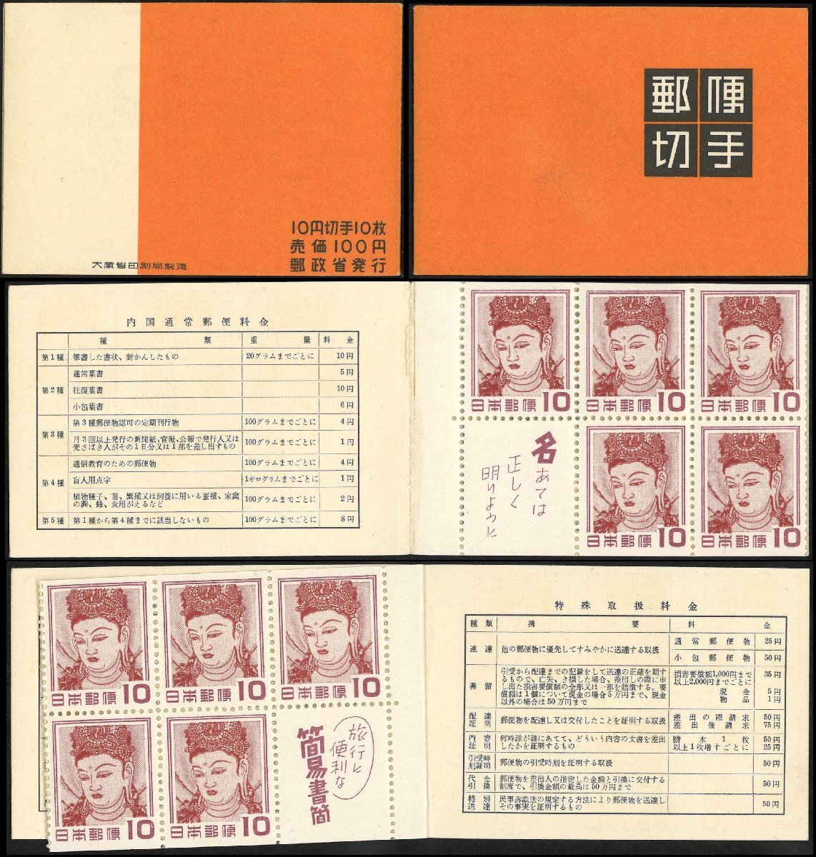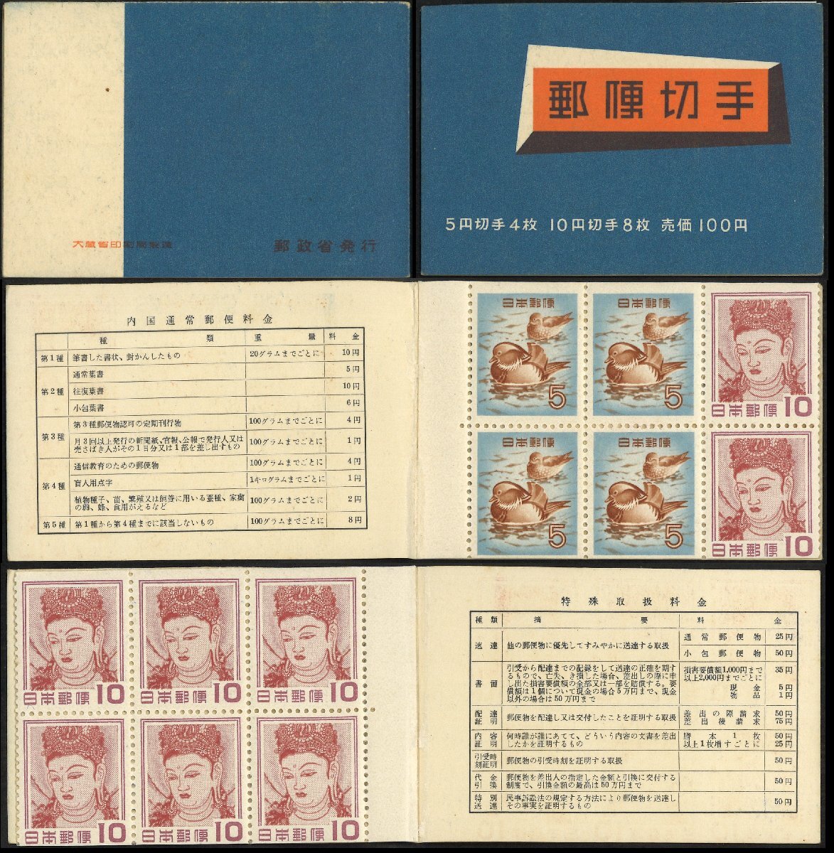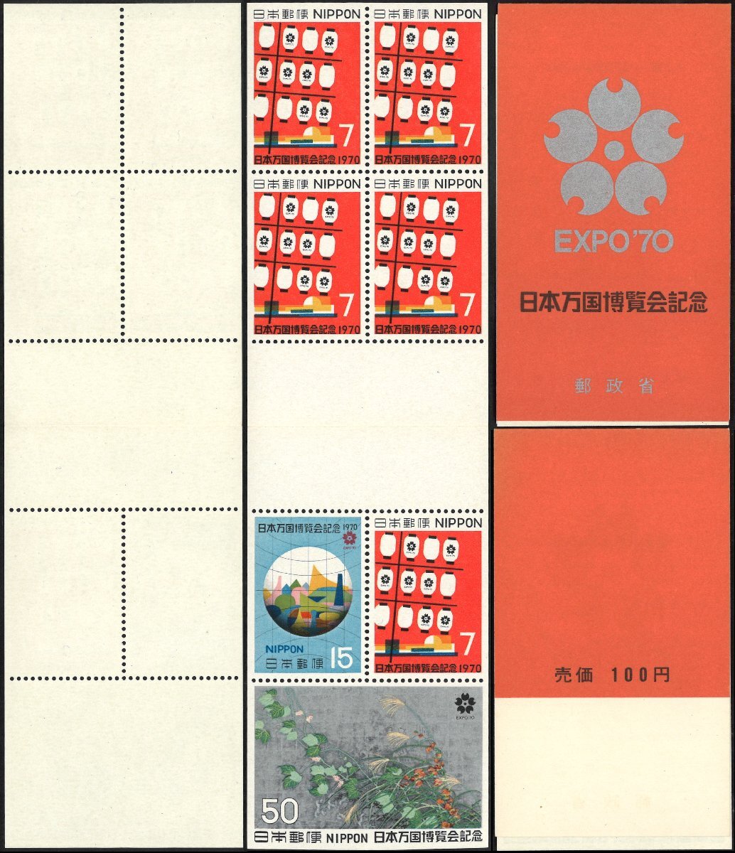 郵便切手帳各種 おしどり・壁画100円/壁画100円/郵便番号100円/日本万国博(1次/2次)背がためなし◆おたからや【D-C08426】
