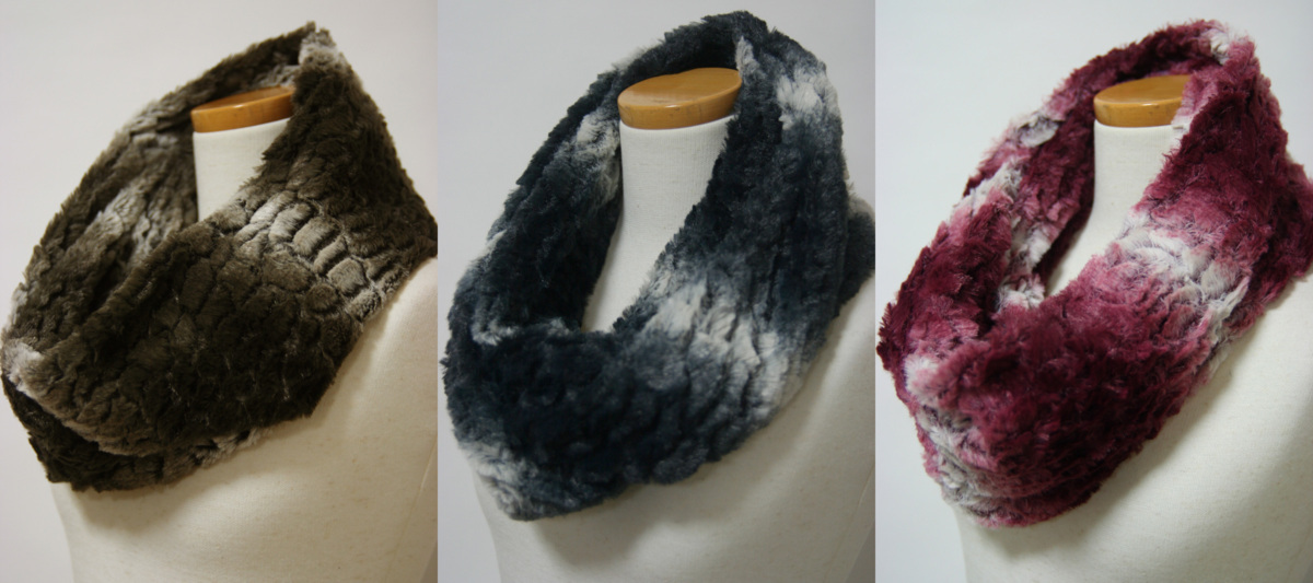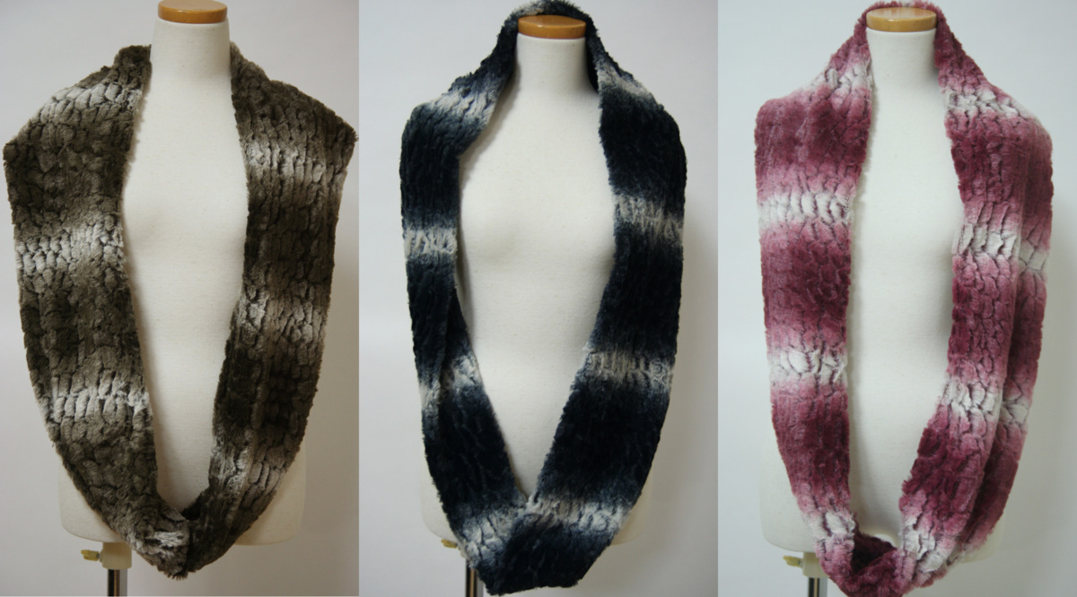送料無料◆超お得◆豪華3色組◆フェイクファー◆二重巻き◆プレーンカラー◆グラデーションロングスヌード(モカ&ネイビー&ピンク)3436