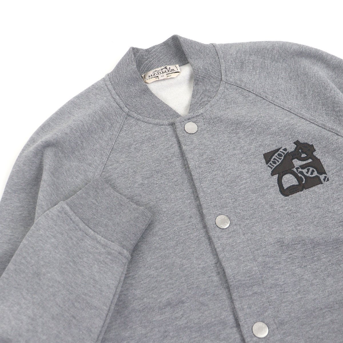極美品□HERMES エルメス 2024年製 H467830HA QUATERB H セリエボタン ラムレザーパッチ スタジャン グレー XS イタリア製 正規品 メンズ