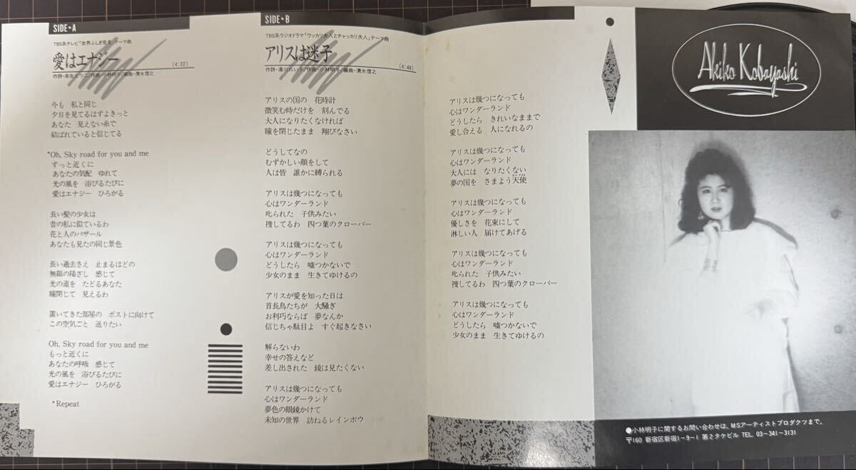 即決◆小林明子/愛はエナジー/アリスは迷子 (美品EP)「世界ふしぎ発見」テーマ曲 送料180円