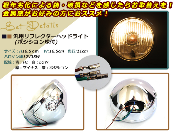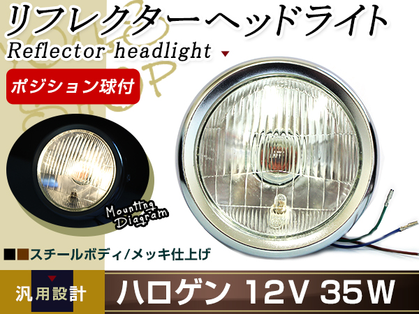 | 商 品 説 明 | こちらは汎用 リフレクター ヘッドライト 130mmメッキスチール ボディ ハロゲン 12 V 35 W ポジション球付になります