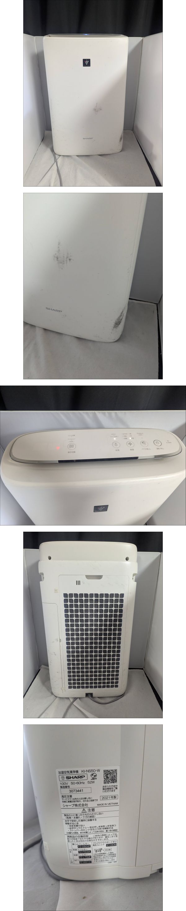 | 商品説明 | 【商品について】 ご覧いただきありがとうございます。 この度出品いたしますのは「 ●SHARP シャープ 加湿空気清浄機 プラズマクラスター KI-NS50-W ホワイト 2021年製● 」でございます。 個人所有物の整理のため、出品する運びとなりました。 中古品ではございますが、ご活用いただける方にお譲りできれば幸いです。 商品の状態、付属品、寸法等につきましては、掲載写真にてご確認をお願いいたします。 補足:当方、ペットの飼育および喫煙の習慣はございません。お気にされる方はご参考ください。