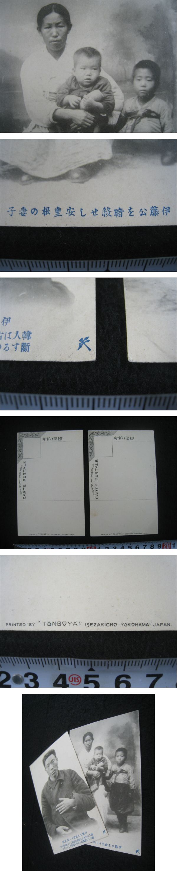 戦前 朝鮮 絵葉書 安重根 2枚 「伊藤公を暗殺せし安重根」「伊藤公を暗殺せし安重根の妻子」トンボ屋 ■検韓国併合日本統治期抗日 | |||