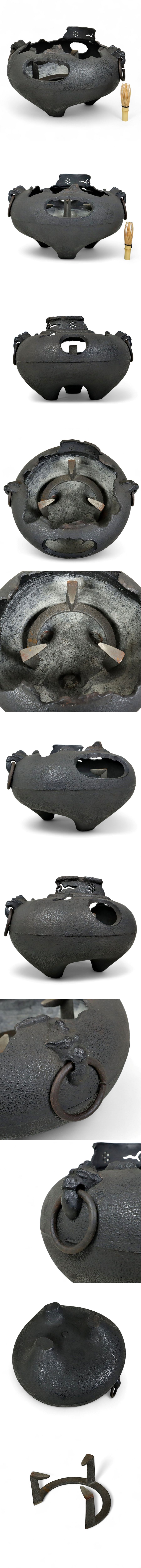 | 商品名 | 茶道具 鉄製 やつれ風炉 獣耳 遊環 破れ風炉 煎茶道具 骨董品 古美術品 | | サイズ | 幅:約37.5cm 高さ:約25cm