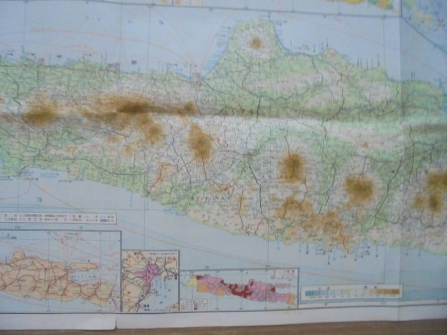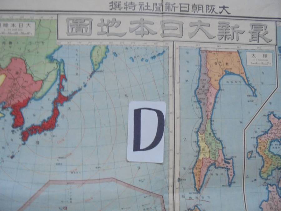 大東亜圏の戦前古地図4枚です。いずれも経年の変化で、ヨゴレ、スレ、ヤケ、シワ、折り目、縁カケがあります。折ったり丸めても良ければ、送付は定形外やクロネココンパク便等利用できます。(A)「標準大東亜分圏-ルソン島」で、縦77㎝、横幅54㎝程度あります。(B)「セレベス島」で、縦65㎝、横幅45㎝程度あります。(C)「ジャワ」で、縦108㎝、横幅38㎝程度あります。(D)昭和8年発行の「大日本地図」で、縦79㎝、横幅108㎝程度あります。◎ 当品の送料は60サイズで、「ヤフ-指定おてがる配送のクロネコ割引価格」と同料金です(送料は落札者負担で匿名配送不可です)。定形外が可能な商品は、当方が取引ナビにてご提案させていただきます。◎当方の出品商品は、今後の落札の有無にかかわらず、7日間程度の取り置き(同梱包)をお伺いいたしますので、取引ナビに「取置希望」を明記していただければ、取り置きを歓迎しますのでごゆっくりどうぞ。なおヤフ-システムではかんたん決済利用は落札後5日以内となっており、それ以降は銀行振り込みとなり詳細は落札後ご案内します、簡明のため落札毎のかんたん決済も歓迎します。◎また商品の作者が明記され真作・肉筆と記載している場合、真作・肉筆が疑われる根拠がありましたら返品・返金します。◎なお当方が入手した個人情報は、この取引以外には使用しない、他の商品等のダイレクトメ-ルをしない、取引完了1ヶ月後には全ての個人情報を消去する事を厳守いたします。