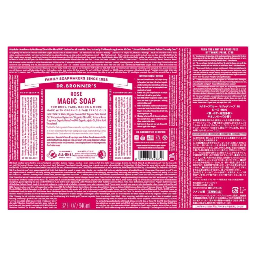 ドクターブロナー マジックソープ RO ローズ 946mL オーガニック 天然由来 液体 石けん 石鹸 ボディソープ dr.ブロナー コストコ COSTCO