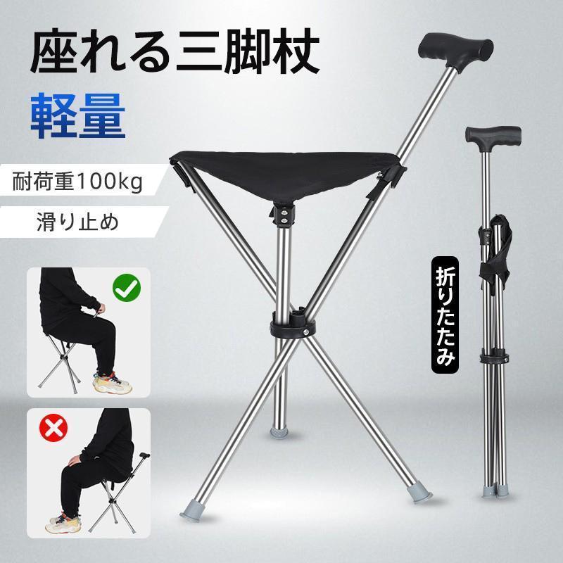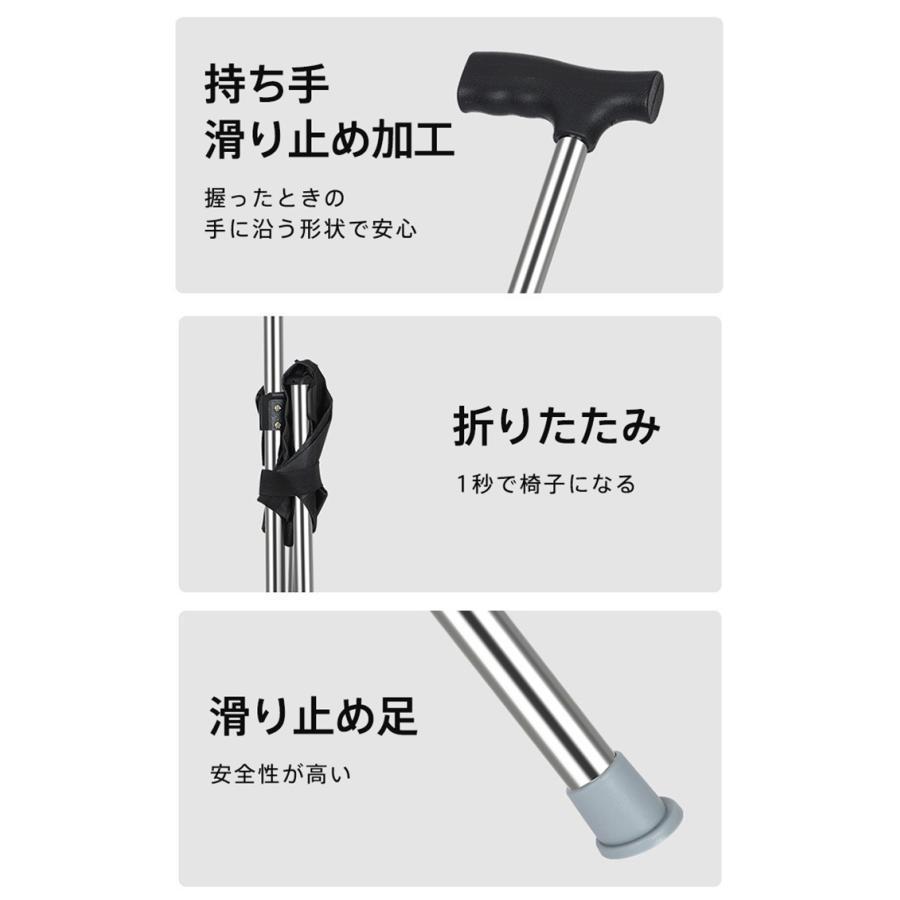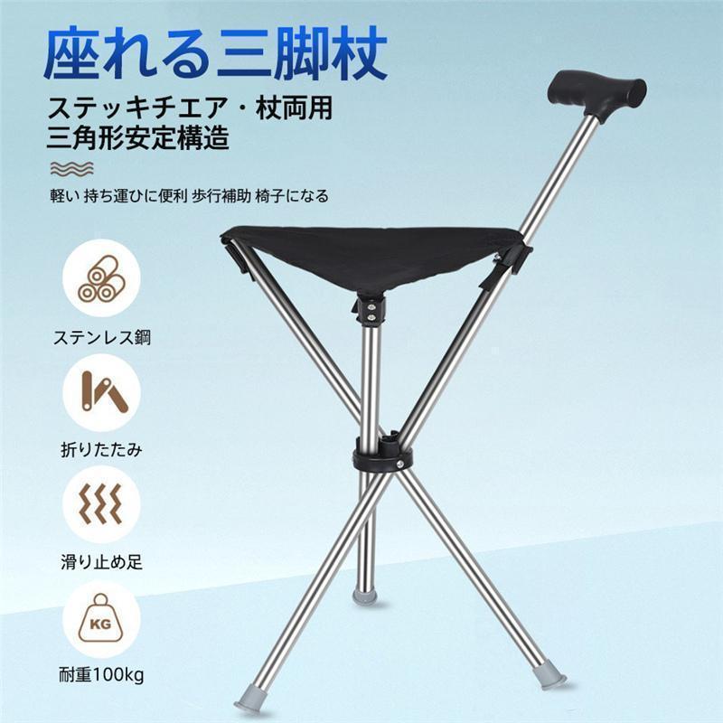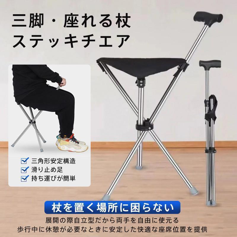 当店人気!杖 介護 座れる杖 折りたたみ 三脚 軽量 イス 椅子 自立式 ステッキ 歩行補助 チェアー 滑り止め 休憩 女性 男性 年寄り 敬老の日 プレゼント