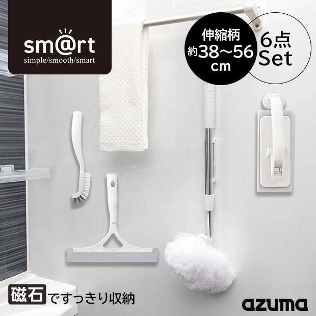 アズマ公式 sm@rt 浴室 清掃 6点セット 磁石 収納(浴槽洗いFM、浴槽洗いスペア、浴室床洗い、浴室床洗いスペア、水切りワイパー、スミズミ ブラシ)モップ 風呂