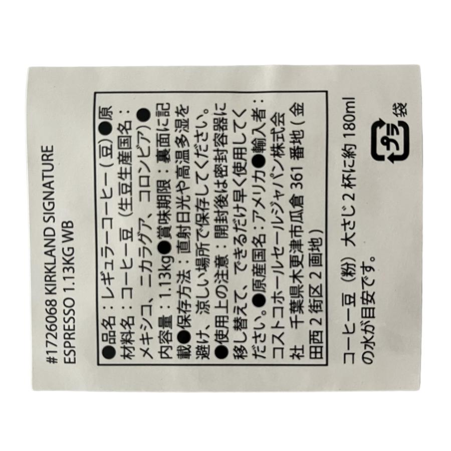 カークランド エスプレッソブレンドコーヒー 豆 1.13×2セット コストコ COSTCO