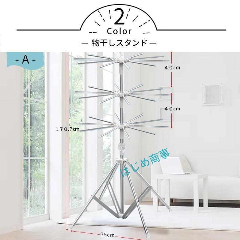 洗濯物干し 室内物干し 物干しスタンド パラソル型 折りたたみ たくさん干せる ステンレス製 3段 直径約75cm コンパクト 省スペース 高さ180cm調節可能 四本足