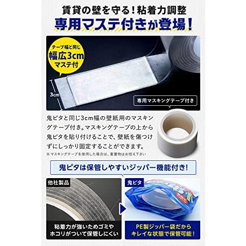 鬼ピタ 魔法のテープ 両面テープ はがせる 超強力 マステ付 保管袋付 壁紙対応 (横幅3cm×厚み0.2cm×長さ3M)