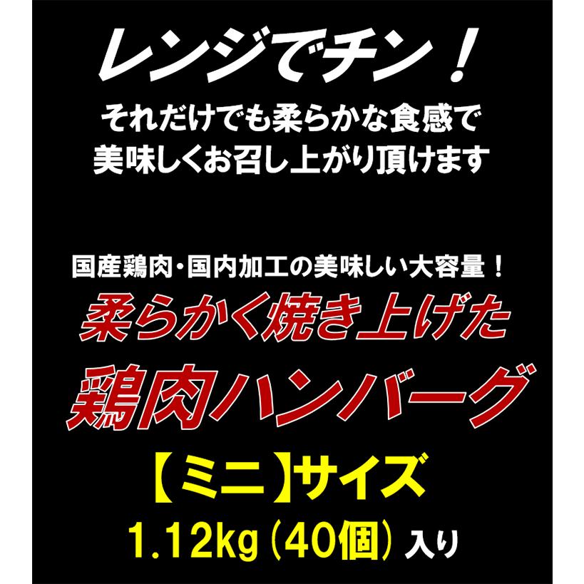 ハンバーグ やわらか鶏肉ハンバーグミニ 1.12kg 40個入り 肉 鶏肉 惣菜 お弁当 冷凍 国産 国産鶏肉 国内加工