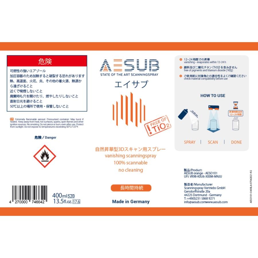 AESUB(エイサブ)オレンジスプレー 400ml 3Dスキャナ用反射防止昇華スプレー 長時間持続タイプ