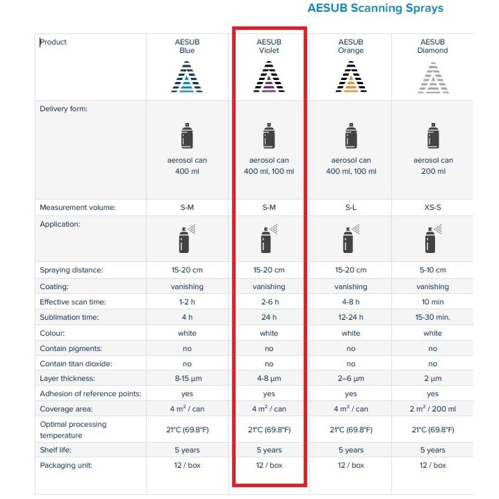 AESUB(エイサブ)バイオレットスプレー 400ml 3Dスキャナ用反射防止昇華スプレー 中時間持続タイプ