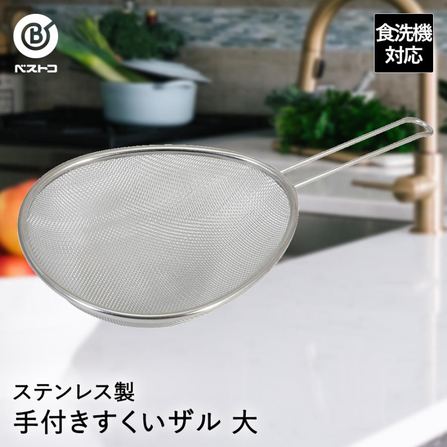 ザル 浅型 手付き ステンレス すくいザル 大 ...