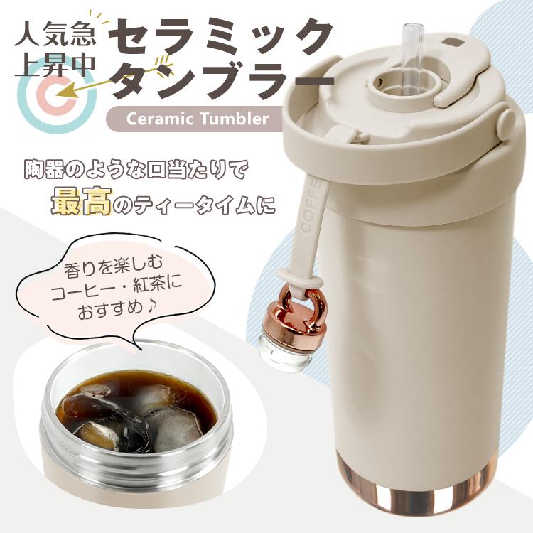 タンブラー セラミックタンブラー 蓋付き ストロー付きタンブラー ストロー セラミック 持ち運び 蓋付きタンブラー ステンレスタンブラー こぼれない コーヒー