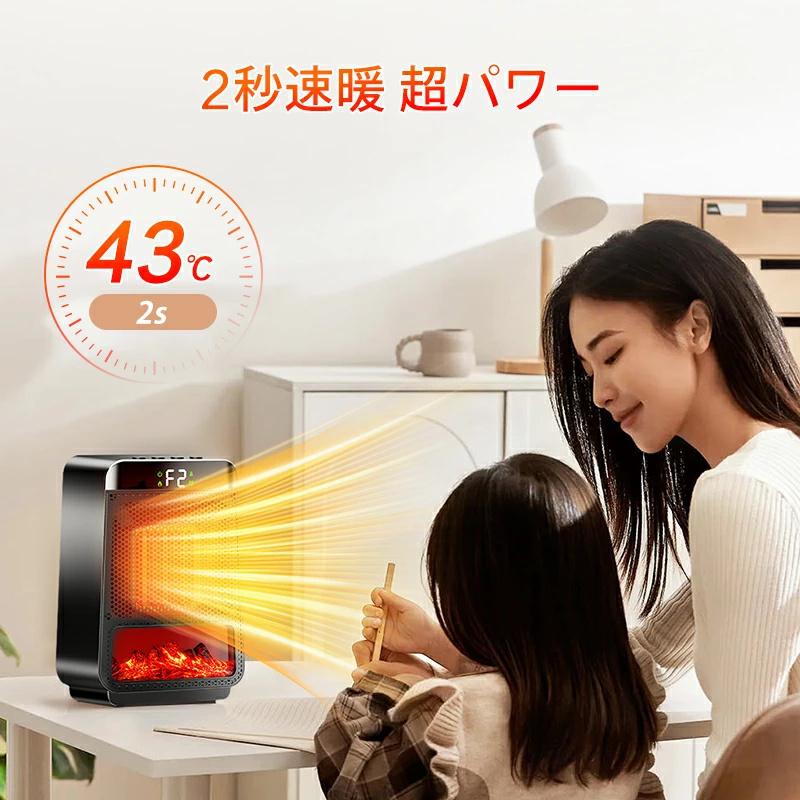「2点購入で1点あたり2680円」ファンヒーター セラミックヒーター 2秒速暖 1200W ヒーター 足元 オフィス 暖房器具 セラミックファンヒーター 風量2段階 LCD表示