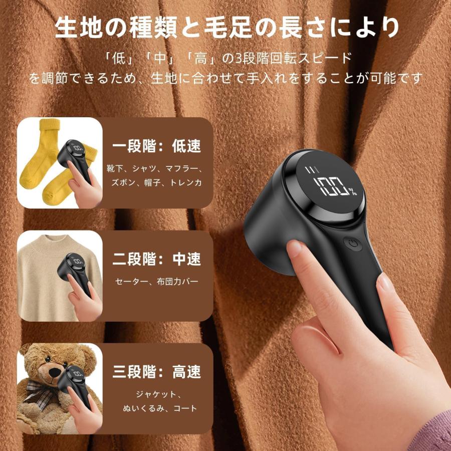 毛玉取りFrSara毛玉取り 電動 毛玉クリーナー けだまとり 電動 液晶ディスプレイ付き 3段階のスピード調整 強力6枚刃 Type-C充