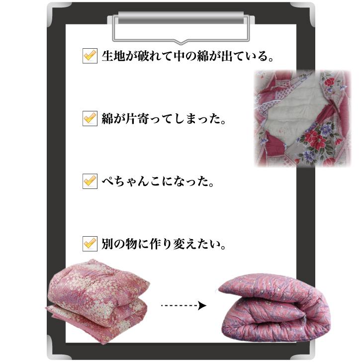 掛敷セット★布団 打ち直し 綿布団 シングル 掛け敷き布団 リフォーム 仕立て直し わた補充 ふっくら復元 和柄 洋柄 オリジナル柄 カバー8種類選択可 日本製