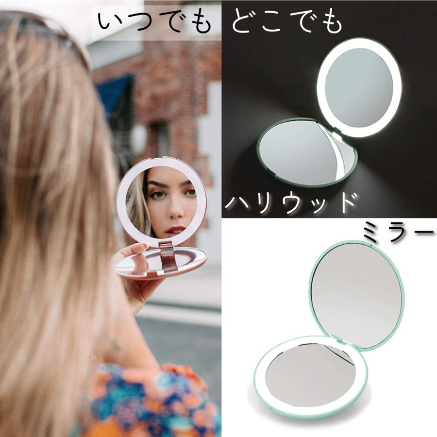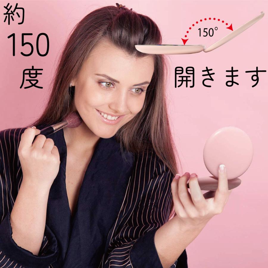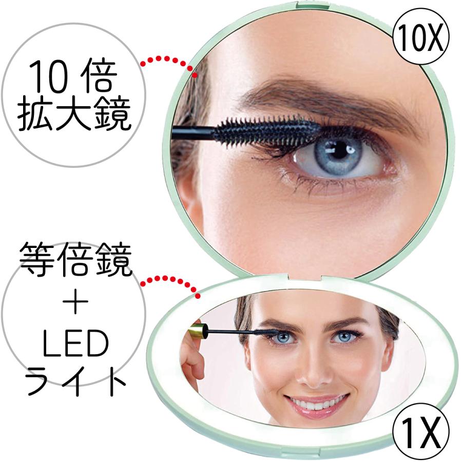 コンパクトミラー 手鏡 LED付 10倍拡大鏡付 折りたたみ 携帯ミラー 化粧鏡 メイクミラー 化粧直し コンタクトレンズ直し スキンケア メイクアップ