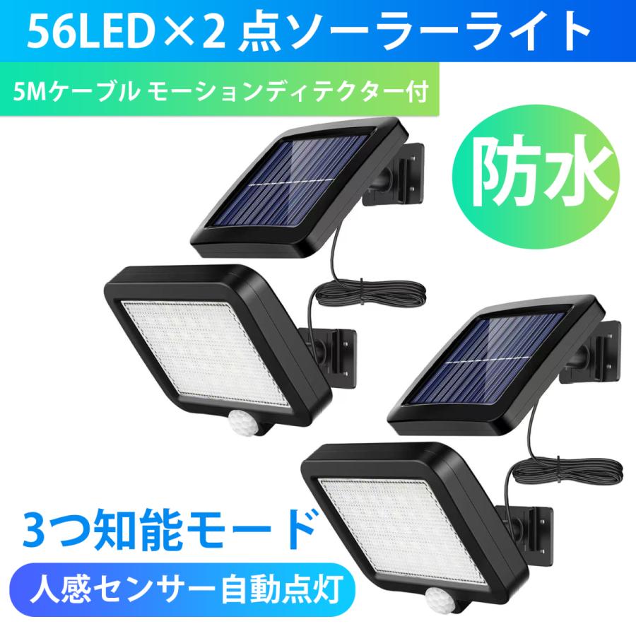 センサーライト 屋外 56LED×2ソーラーライト 5Mケーブル モーションディテクター付 3つ知能モード 太陽光発電 防水 人感センサー自動点灯