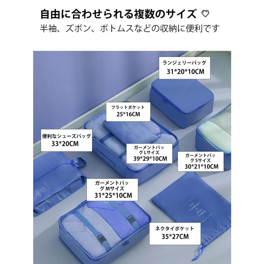 トラベルポーチ 8点セット カチオン性素材 アレンジケース 出張 旅行衣類整理収納用 パッキングポーチ 旅行用便利グッズ 旅行用ポーチ
