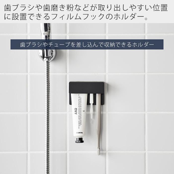 山崎実業 公式 タワー フィルムフック差し込み式歯ブラシ&チューブホルダー W9 tower 歯ブラシホルダー 歯磨き粉 浮かせる 1495 1496