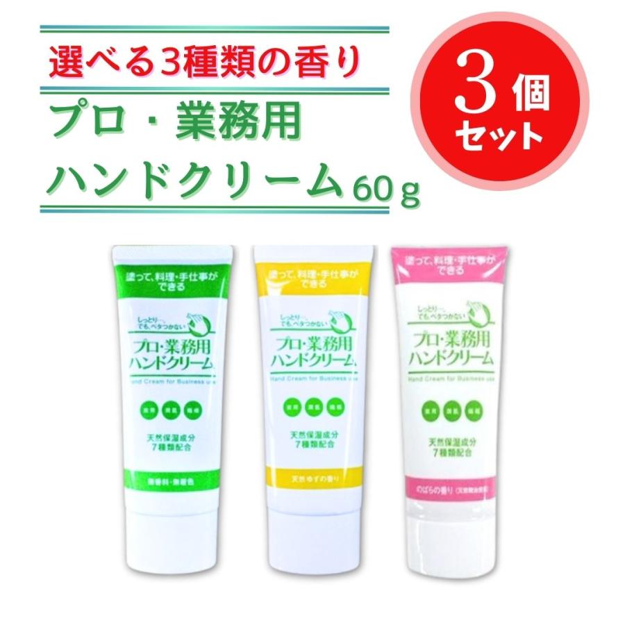 選べる香り【3個セット】プロ 業務用ハンドクリーム 60g 全3種 無香料 ゆず のばら ベタつかない 保湿 乾燥 手荒れ ケア ヤーマン ポスト投函 平野レミ