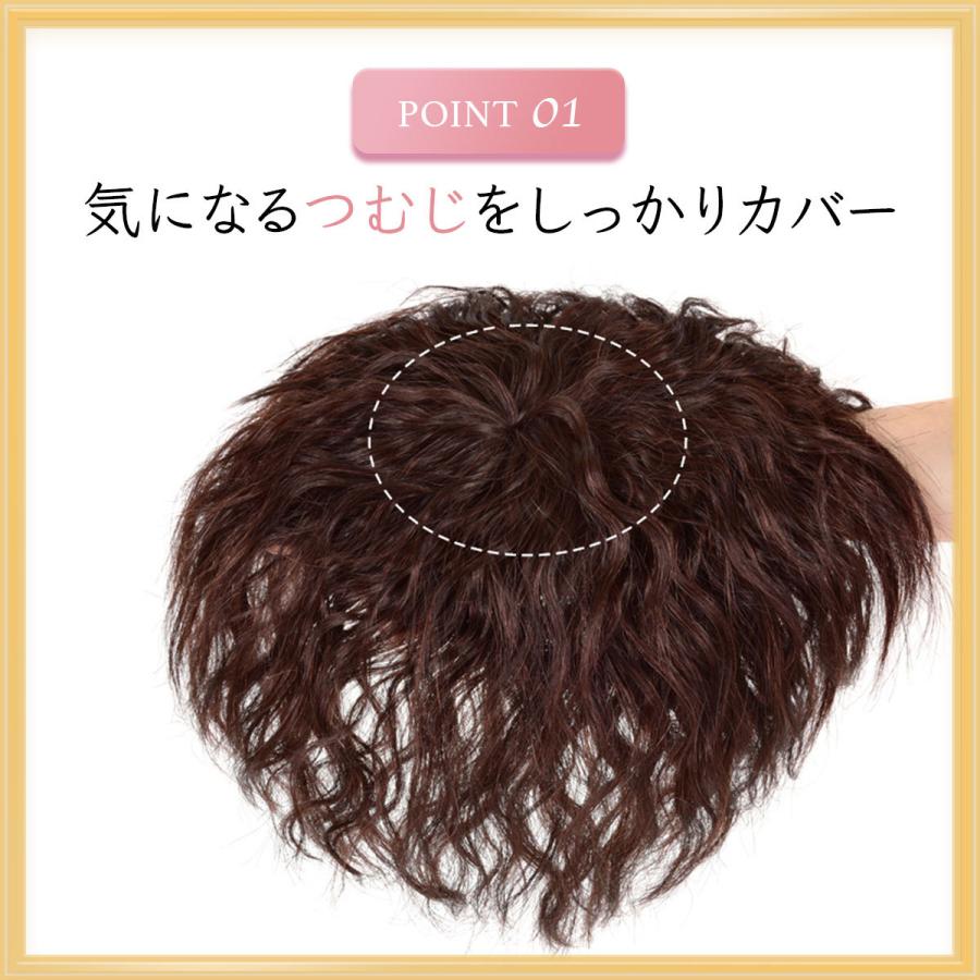 ウィッグ 頭頂部ウィッグ パーマ ウェーブ 部分ウィッグ ヘアピース 自然 ナチュラル つむじ 4カラー