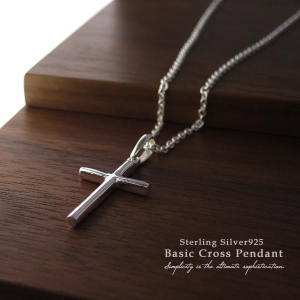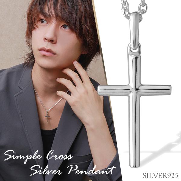 クロス ネックレス メンズ シルバー925 シンプル 十字架 ペンダント 鏡面 レディース おしゃれ 男性 20 30 40代 チェーン付