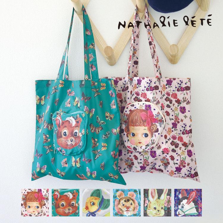 ナタリーレテ エコバッグ / ナタリー・レテ フェイスバッグ 全6種 / 折りたたみバッグ 収納ポーチ付き マチなし お買い物バッグ メール便