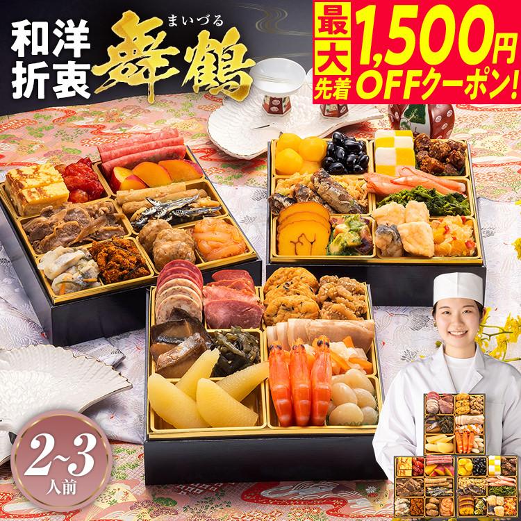 おせち おせち料理 2026 予約 送料無料 博多久松 和洋折衷 本格料亭 舞鶴 6.5寸×3段重 全36品 2人前-3人前 冷凍 2025