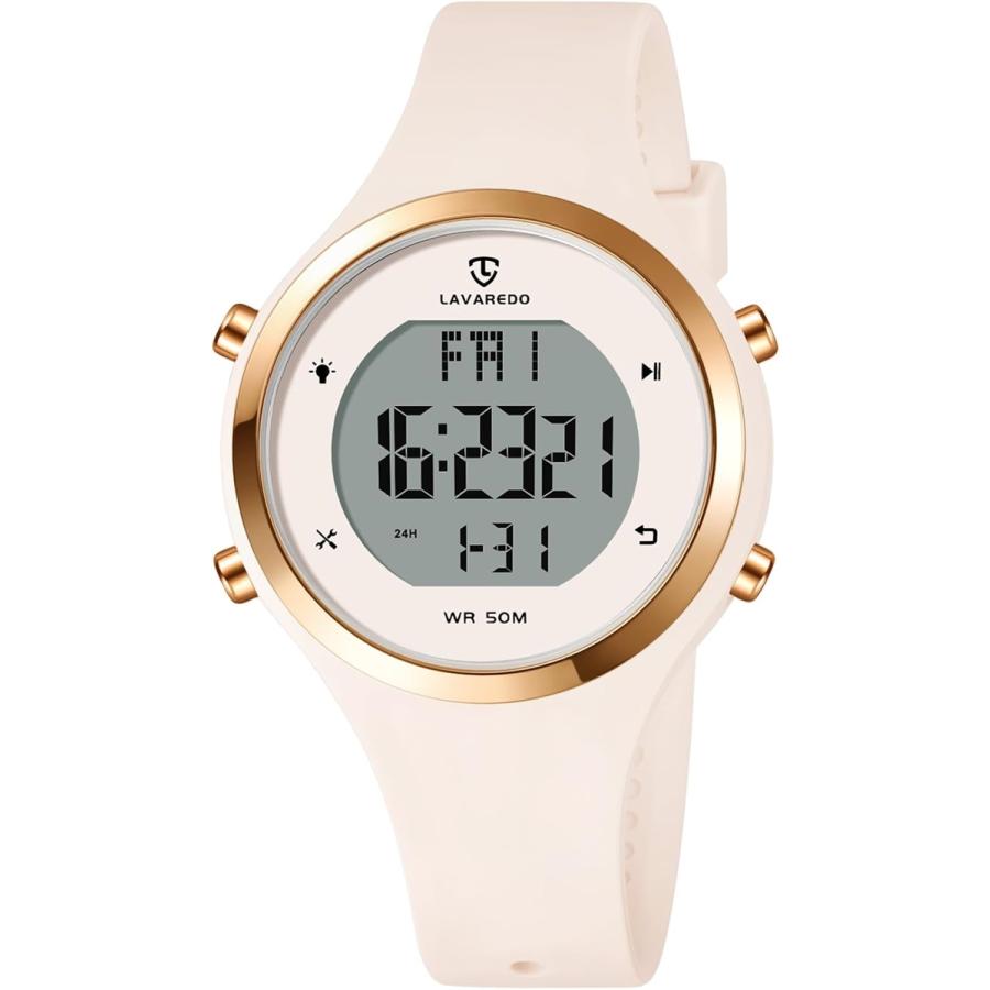 腕時計 デジタル レディース メンズ うで時計 スポーツウォッチ 見やすい 多機能付け 日付 曜日 アラーム(06-肌色とゴールド)