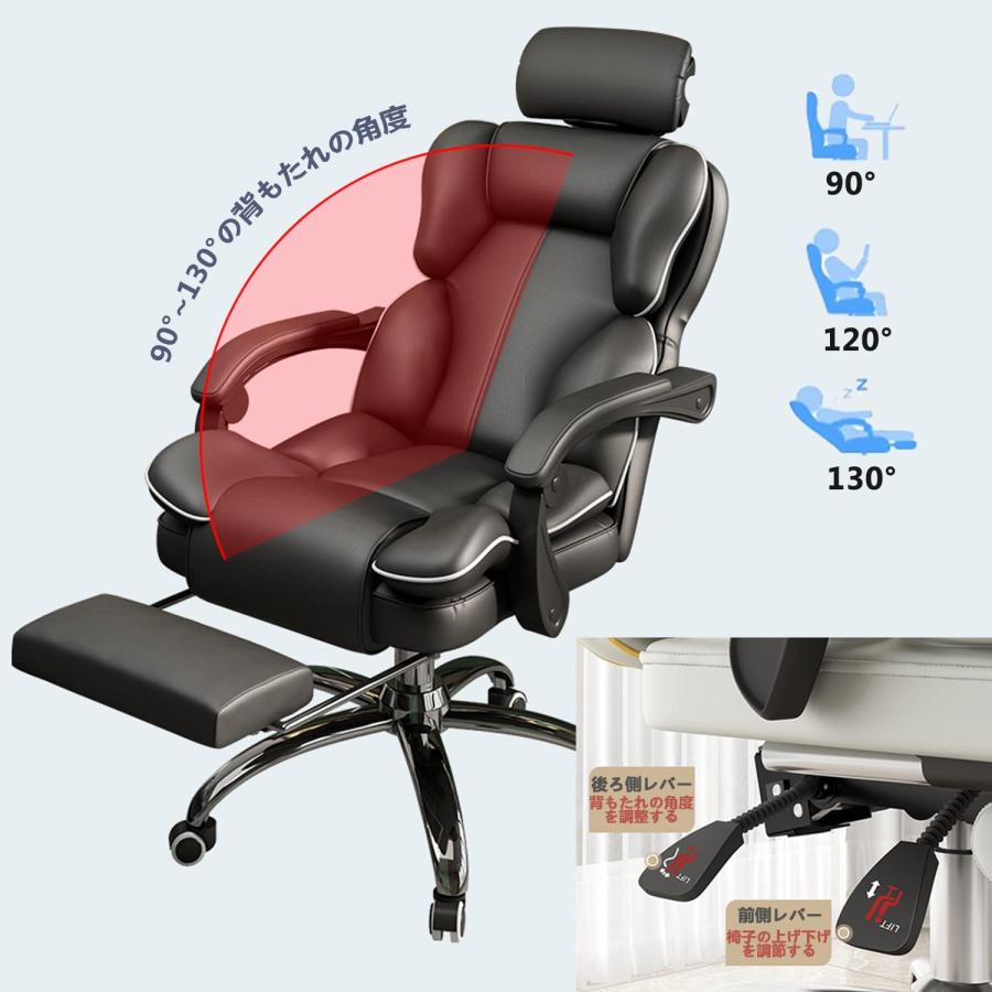 オフィスチェア 社長椅子 パソコンチェア リクライニング ゲーミング用 360度回転 昇降機能 伸縮可能フットレスト付き 事務椅子 人間工学 疲れない椅子