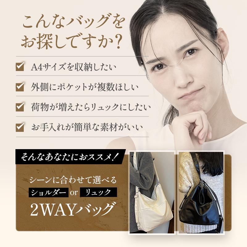 ショルダーバッグ レディース 2WAY リュックサック おしゃれ ポケット 収納 レザー 通勤 通学 大容量 軽量 ファスナー 60代 軽い おおきめ