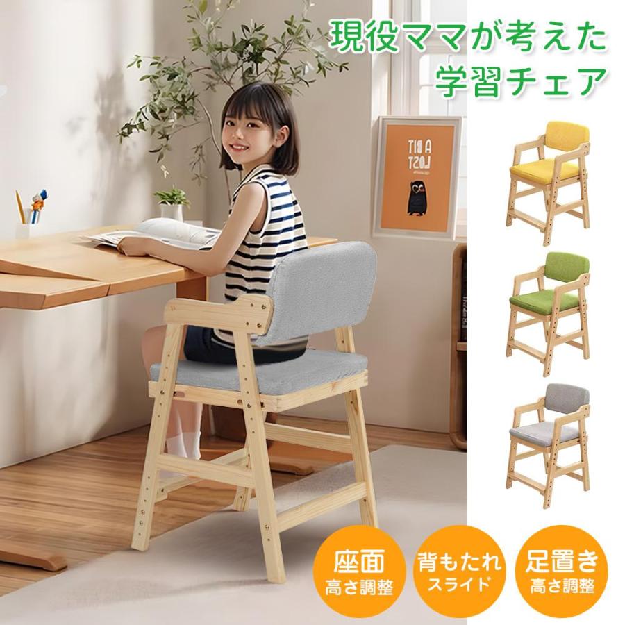 Yumcute 学習椅子 学習チェア 木製 姿勢 椅子 チェア 子ども 小学生 中学生 高校生 おしゃれ クッション付き 勉強椅子 ハイチェア ダイニング椅子 2年保証