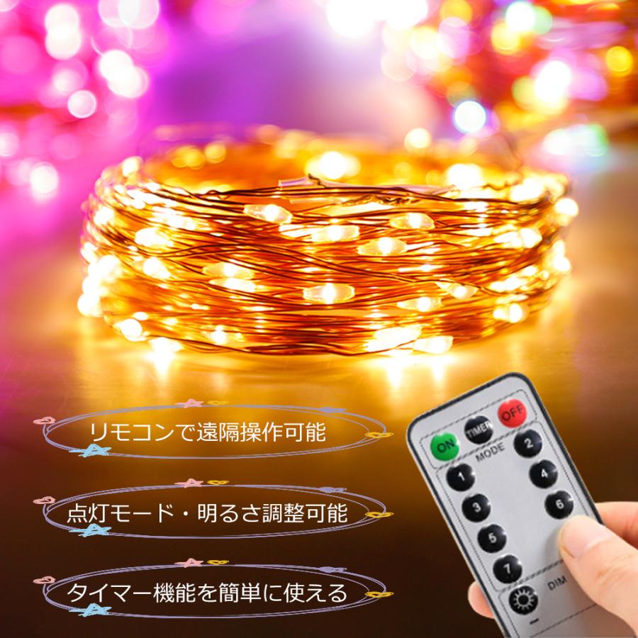 \丸ごと防水・室外対応/クリスマス 電飾 LED イルミネーション ライト LED 100球 10m 電池式 フェアリーライト 部屋 屋外用 ワイヤー カーテンライト