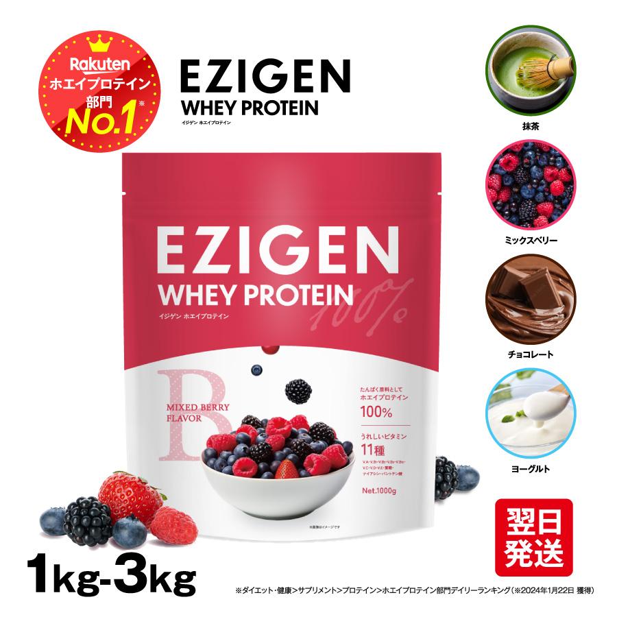 EZIGEN イジゲン ホエイ プロテイン チョコ味 ベリー味 ヨーグルト味 抹茶味 1kg 美味しい プロテインホエイ 飲みやすいプロテイン ホエイプロテイン 1キロ