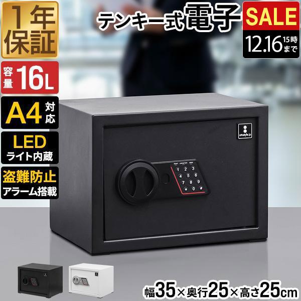 金庫 家庭用 テンキー 防犯金庫 店舗用 小型金庫 小型 16L 棚 A4対応 保管庫 防犯 盗難防止 暗証番号 3桁〜8桁 乾電池式 電子金庫 1年保証 送料無料