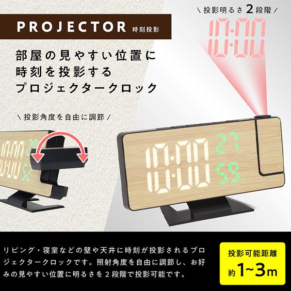 置き時計 投影 プロジェクター時計 デジタル時計 クロック 目覚まし時計 アラーム スヌーズ 時刻投影 木目調 USB 明るい 多機能 送料無料 5M◇ 投影クロック