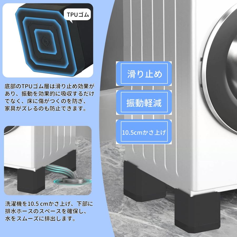 GOTISO 洗濯機用防振かさ上げ台 防振ゴム 底上げ 10.5cm 洗濯機 台 冷蔵庫 嵩上げ 防音 防振 高さ調整 滑り止め 床に傷防止 耐荷重約