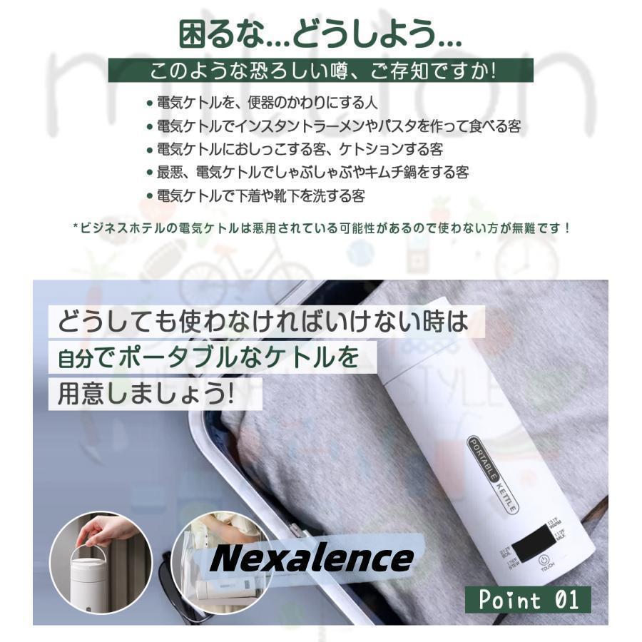 500ml 電気ケトル 携帯用 電気ポット 収納バッグ付き 45℃保温 ポータブル トラベルケトル 携帯湯沸かし器 旅行カップ