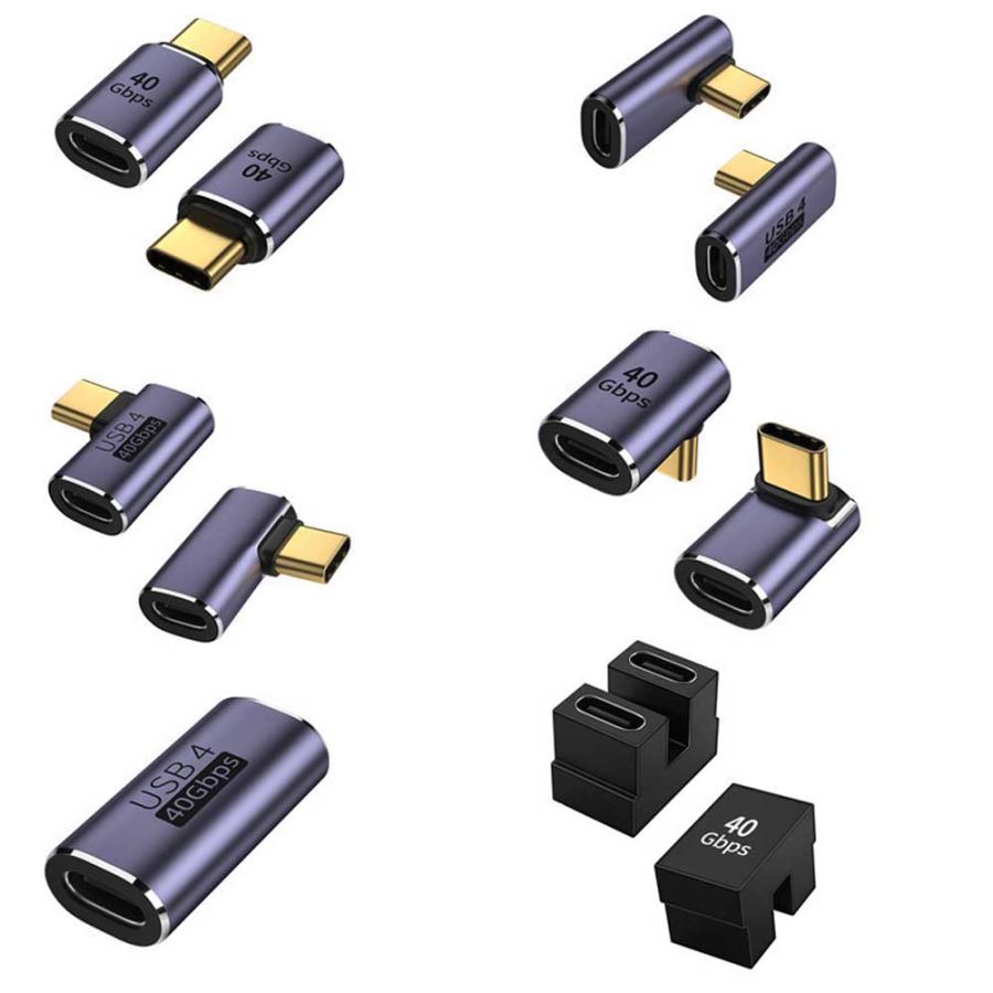 USB 4.0 Type C 変換アダプタ1個 タイプC 延長アダプタストレート L字 U型 USB4.0延長アダプタ 40Gbps高速転送 PD100/5A急速充電 90度 8K@60Hz映像出力対応