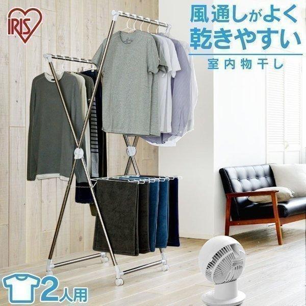 室内物干し 洗濯物干し 風ドライ 部屋干し 速乾 梅雨 ステンレス 2人分 折りたたみ 組立簡単 キャスター付 アイリスオーヤマ KDM-70X *
