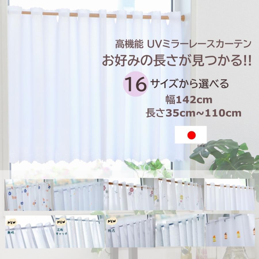 16 サイズ から 長さ 選べる 幅142cm 小窓用 カフェカーテン ミラーレース 日本製 高機能 UVカット 遮熱 保温 省エネ 目隠し 昼夜見えにくい ウォッシャブル