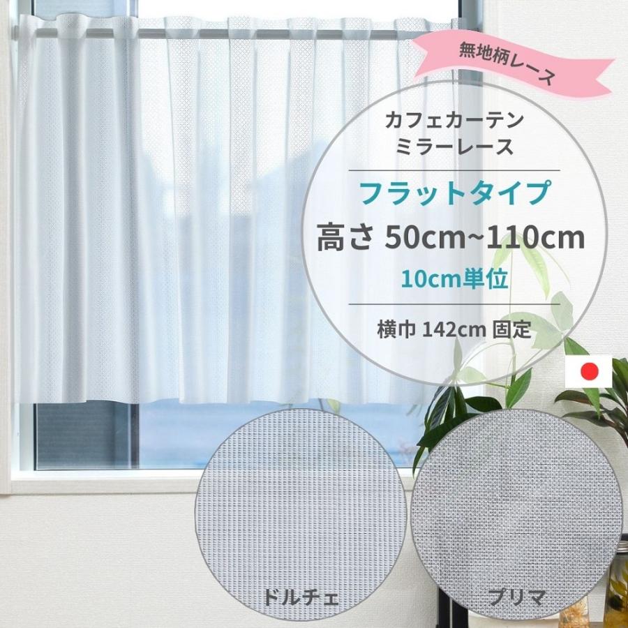 7 サイズ から 長さ 選べる 幅142cm 小窓用 カフェカーテン フラットタイプ 無地柄レース ミラーレース 日本製 UVカット 遮熱 保温 省エネ ウォッシャブル