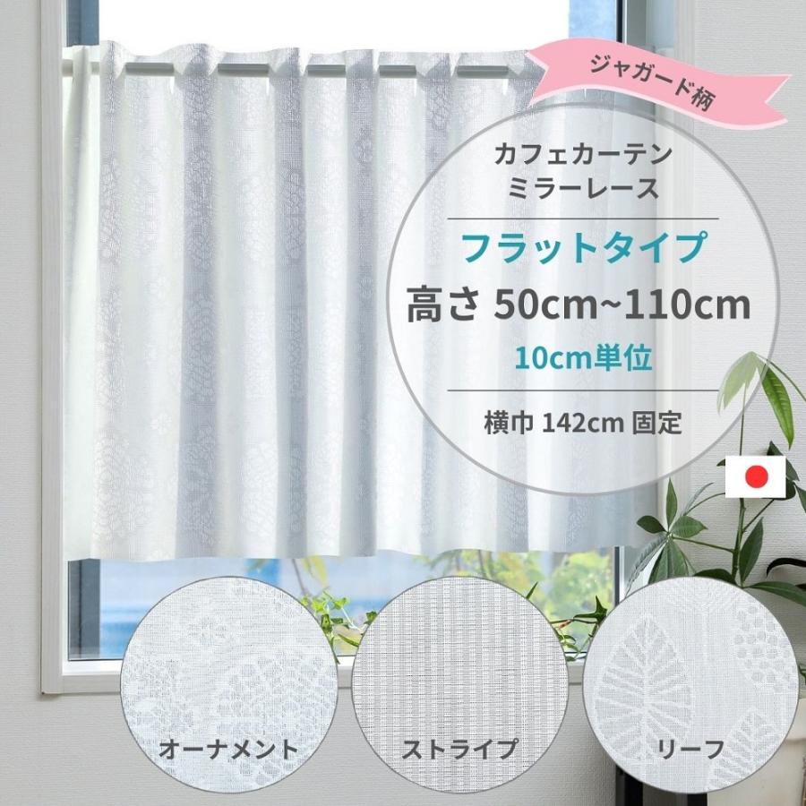 7 サイズ から 長さ 選べる 幅142cm 小窓用 カフェカーテン フラットタイプ ジャガード柄 ミラーレース 日本製 UVカット 遮熱 保温 省エネ ウォッシャブル