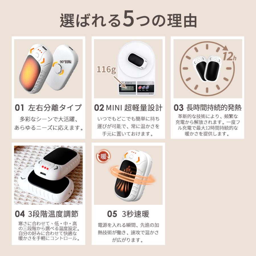 充電式カイロ 充電 カイロ 電気カイロ 左右分離式 3秒急速発熱 12時間連続発熱可能 かわいい usb充電式 小型軽量 冬のギフト 寒さ対策 省エネ