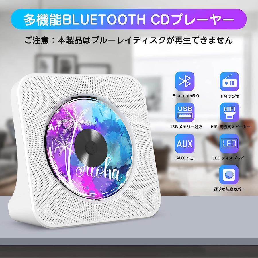 CDプレーヤー 卓上置き式 ラジカセ 多機能 Bluetooth CDラジオ LEDディスプレイ リモコン付き CD/FM/USB/AUX 防塵透明カバー コンパクト 小型 給電式