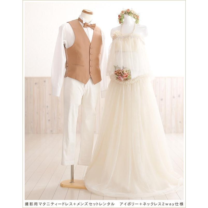 マタニティドレスレンタル 写真撮影用 mt006 メンズペアセット 前撮り 妊婦 小物付き 自宅でマタニティ−フォト 30週前後「アイボリー+ネックレス2way仕様」